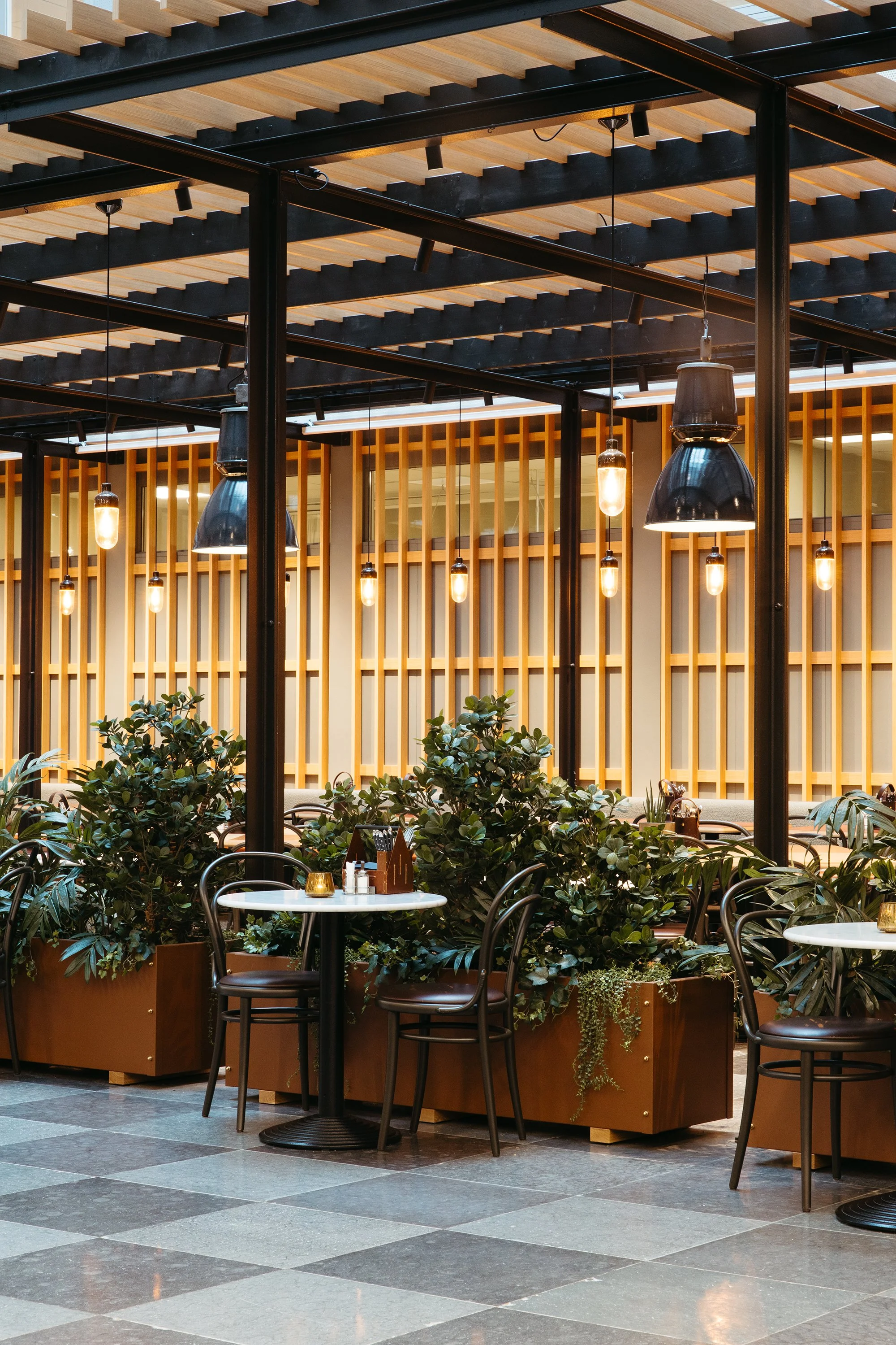 Det som en gång var en ödslig och dragig ljusgård i DN-skrapan har blivit den plats som ger liv åt hela fastigheten. Genom lyhörd samverkan och ett helhetsgrepp på både estetik och funktion skapades en miljö som känns lika självklar som efterlängtad.